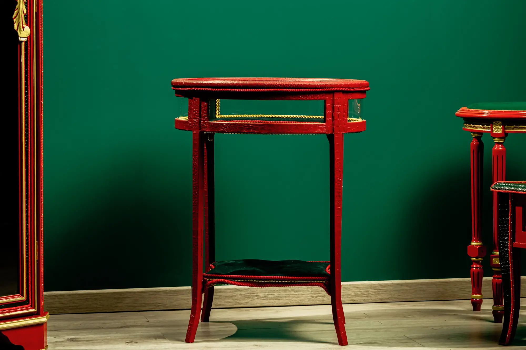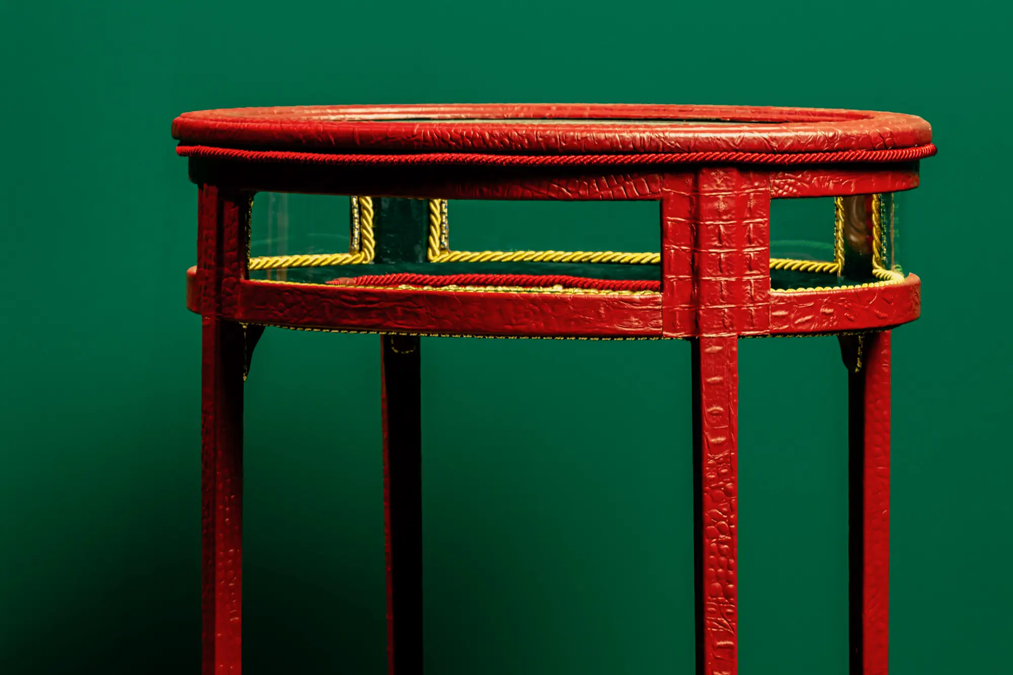 Tavolino Espositivo in Pelle di Vitello Stampa Coccodrillo – Rosso Imperiale