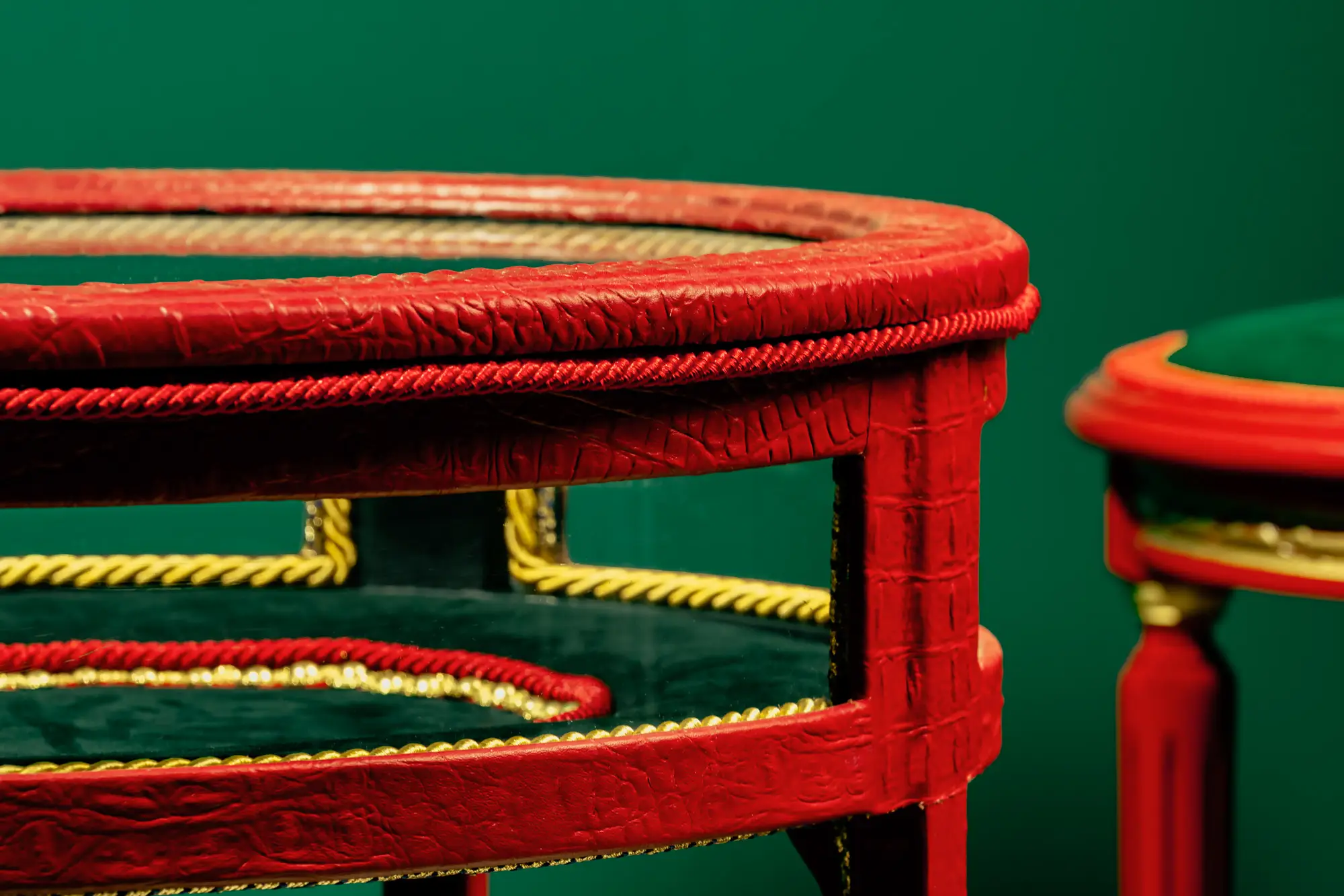 Tavolino in Pelle di Vitello con stampo di coccodrillo e pelle di serpente – Verde Smeraldo & Oro