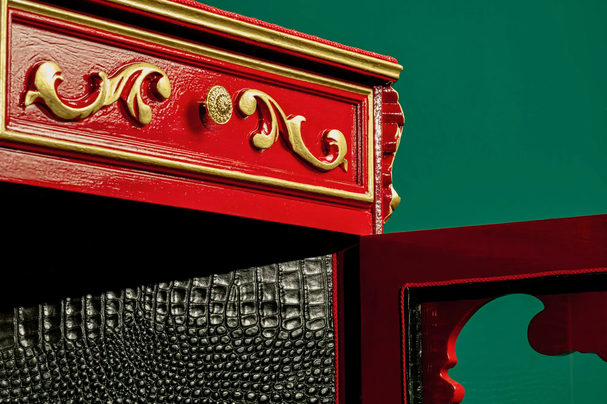 Ogni mobile viene accuratamente selezionato e restaurato con maestria, mantenendo l’anima originaria ma reinterpretandola attraverso uno stile moderno e visionario. Le dorature in oro 24 carati, i rivestimenti in pelli pregiate e l’utilizzo di materiali nobili come il marmo naturale rendono ogni pezzo una scultura funzionale, un simbolo di eleganza, forza e carattere.