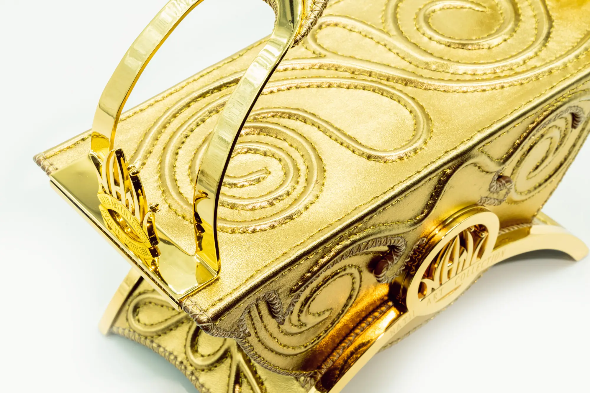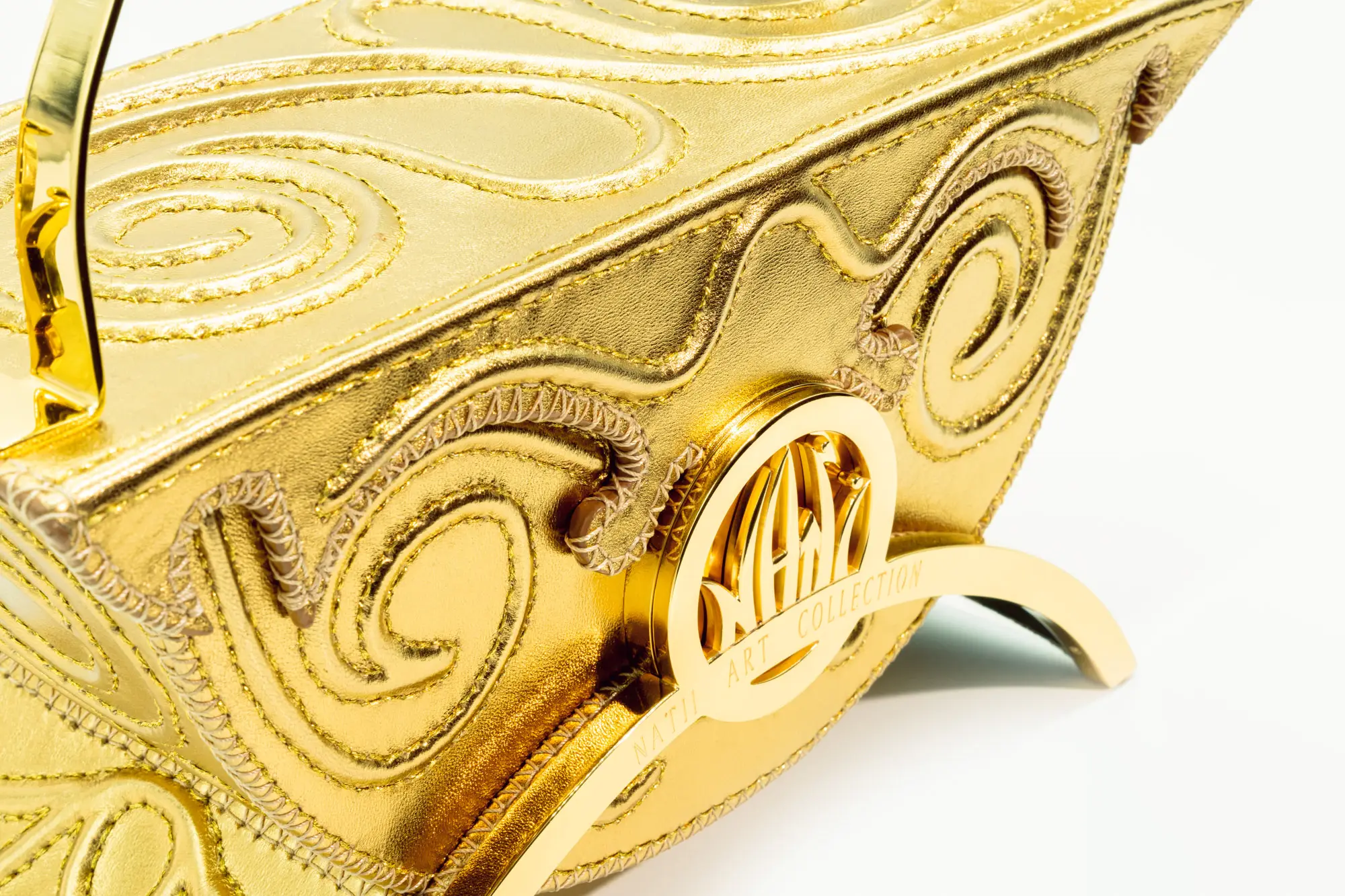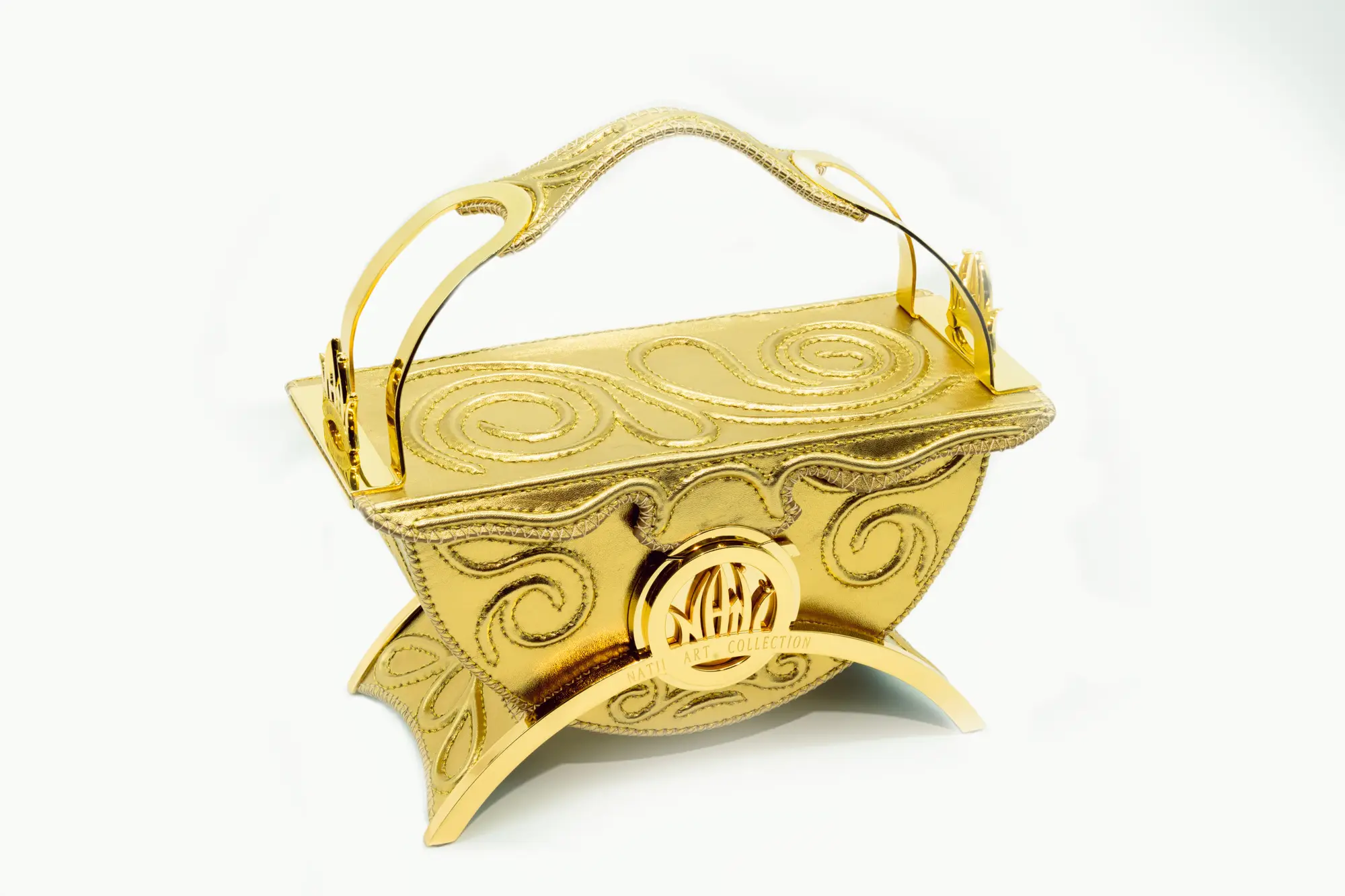 La struttura architettonica, decisa e armoniosa, è impreziosita dal logo Natii Art Collection inciso su un arco dorato — sigillo di unicità e perfezione.