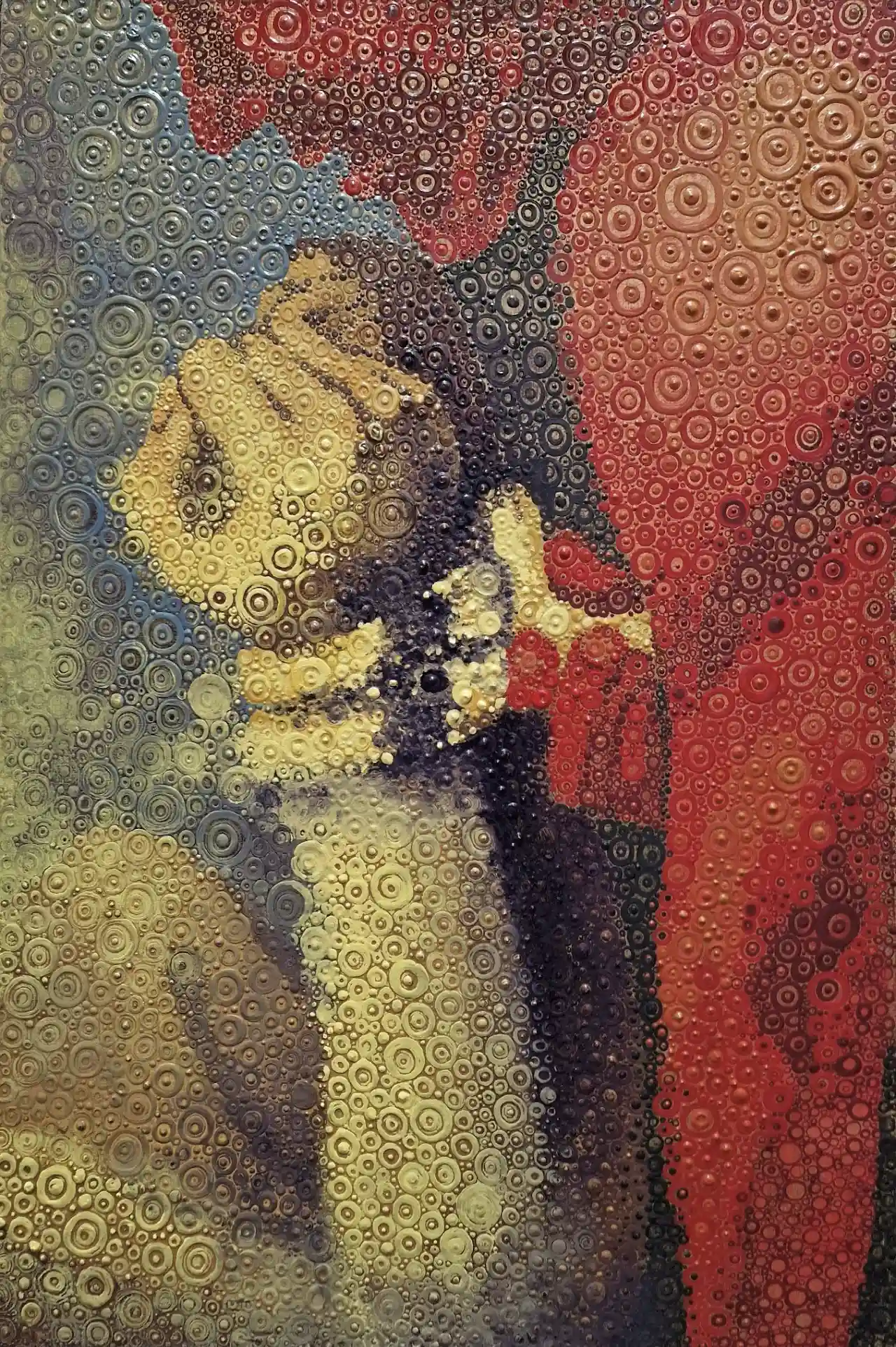 Olio su tela – canapa ,ogni cerchio fatto a mano realizzato con pennello .