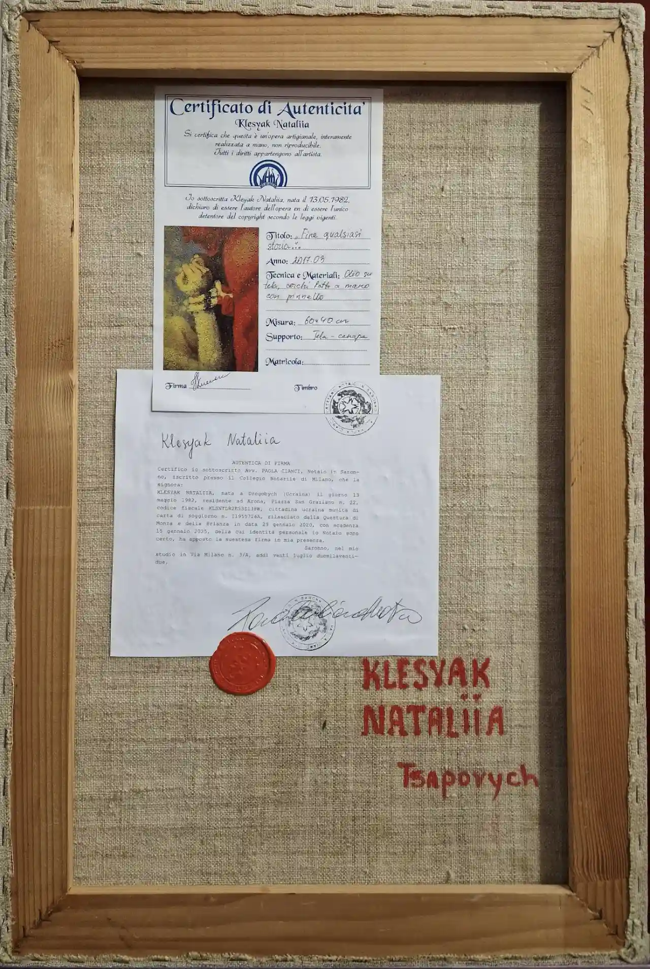 CERTIFICATO DI AUTENTICITÀ REGISTRATO DA NOTAIO.
